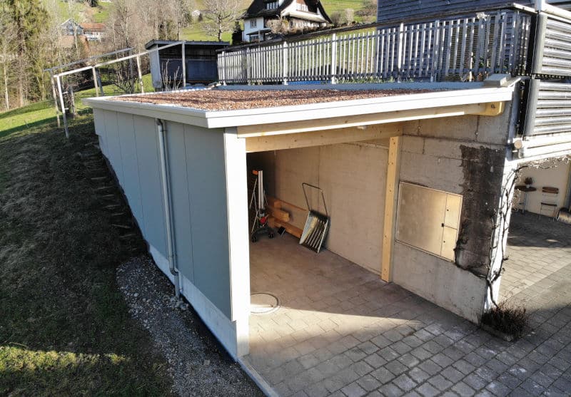Als Erweiterung zur bestehenden Garage, wurde ein Anbau aus Massivholz erstellt. Von der Baueingabe zur Planung bis hin zur Fertigstellung konnten wir dieses Projekt begleiten. Die Holzkonstruktion ist aus der Region und komplett aus massivem Holz (kein verleimtes Holz).
