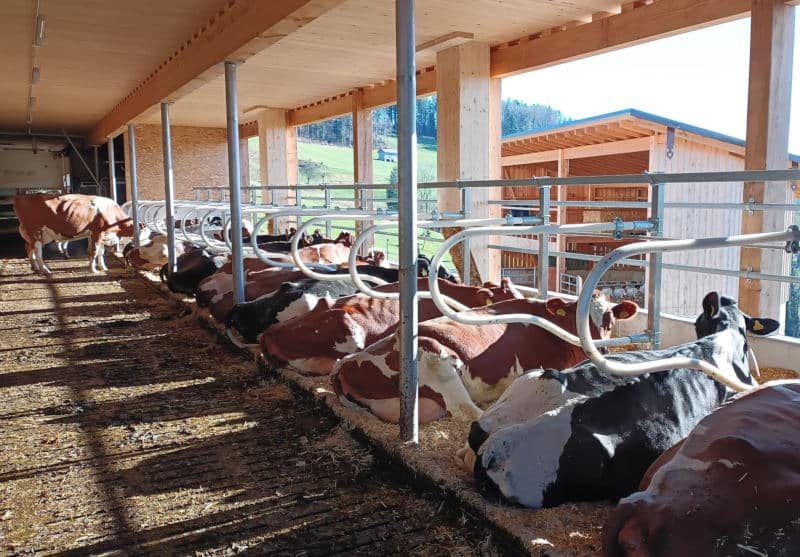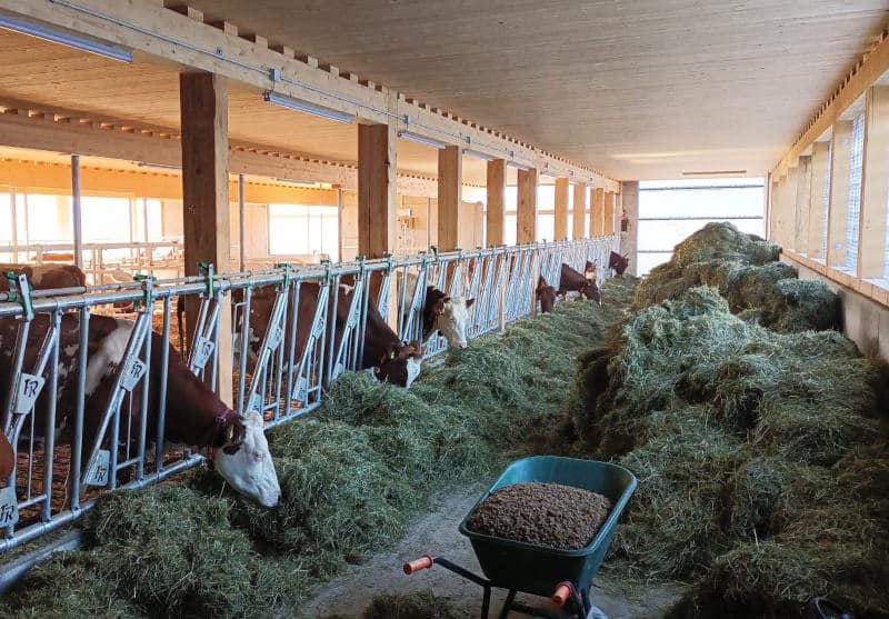 Von der Projektierung bis zur Ausführung wurde der Anbau dieses Boxenlaufstalls für 48 Kühe von uns geplant und ausschliesslich mit Holz vom eigenen Wald vom Bauherr gebaut. Der bestehende Anbindestall wurde für den Einbau vom Melkroboter, Separation mit grosszügigem Abkalbebereich und Technikraum umgebaut. Die Kälber finden im angrenzenden Kälberstall ihren Platz, welcher auf die bestehende Jauchegrube gebaut wurde.