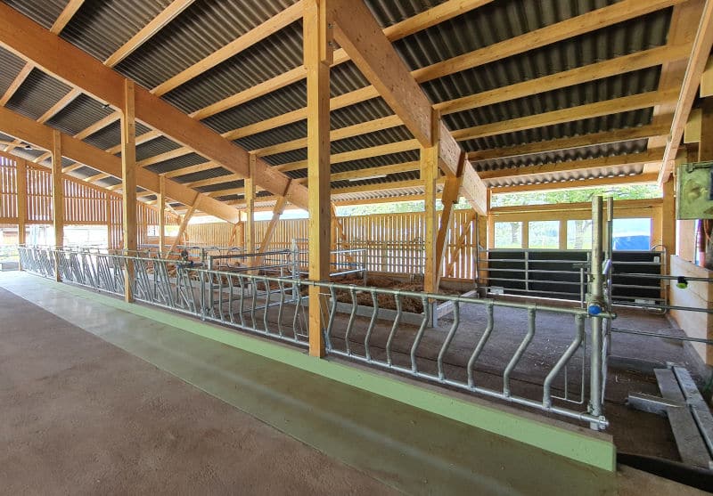 Projekt: Von der Projektierung bis zur Ausführung wurde der Mutterkuhlaufstall für 20 Mutterkühe von uns geplant und mit Schweizer Holz gebaut.