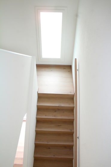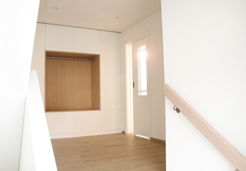 Durch die Aufstockung eines zusätzlichen Geschosses, erstellt in Holzelementbauweise, erhielt die Familie zusätzliche grosszügige Zimmer, sowie eine geräumige Nasszelle. Im Innenbereich verleihen die sichtbaren Dreischichtplattendecken aus Fichte den Räumen eine edle Finesse. Der Einbau von 2 Flachdachlukarnen sorgen für zusätzliche Ausbau-/& Belichtungsmöglichkeiten im Dachgeschoss.