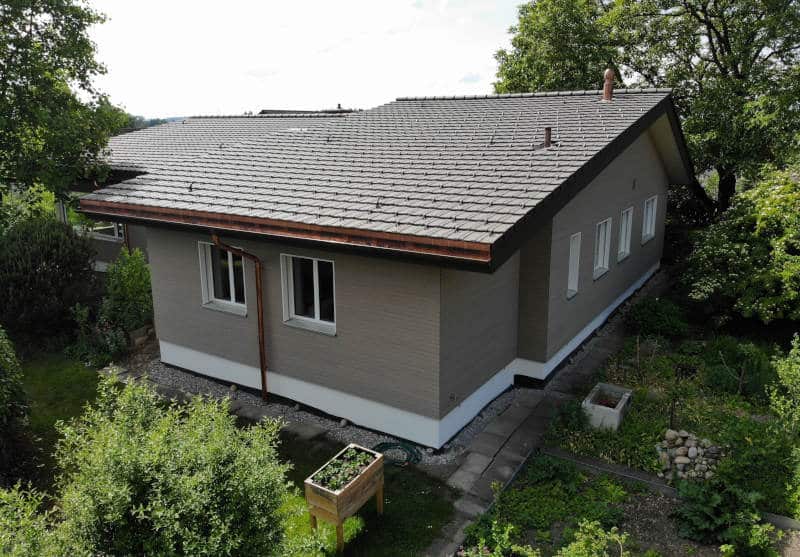 Dieses schöngelegene Einfamilienhaus durften wir umbauen und komplett sanieren. Die Dachkonstruktion wurde mit neuen Übersparren verstärkt und komplett gedämmt. Der Fokus lag dabei auf dem sommerlichen Hitzeschutz. Die neu eingesetzten Dachfenster bringen viel Licht ins Dachgeschoss. Auch die Fassade wurde aufgerostet und neu gedämmt. Die horizontale Fassadenschalung aus einheimischer Weisstanne, in einer astfreien Qualität, bildet einen sehr ästhetischen Abschluss der Fassade.