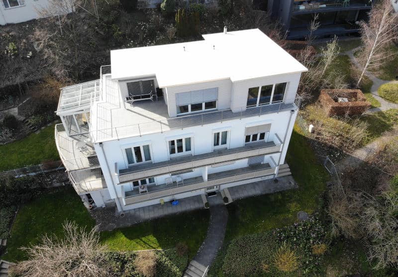 Projekt: Mitten in Thalwil an aussichtsreicher Hanglage wurde das Attikageschoss des Mehrfamilienhauses um wertvollen Wohnraum erweitert und die Dachkonstruktion modernisiert. Das Seepanorama, welches allgegenwärtig ist, steht immer im Vordergrund der Raumanordnung.