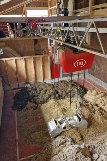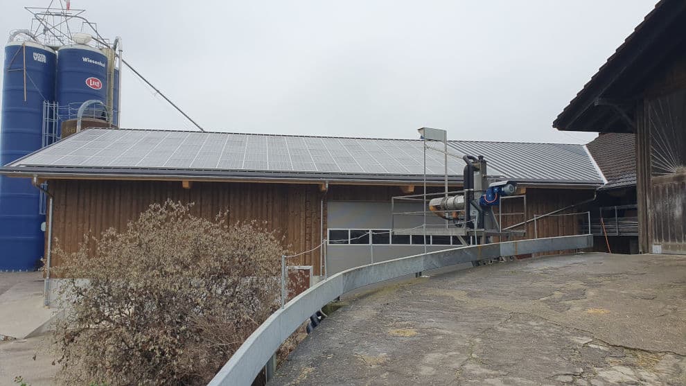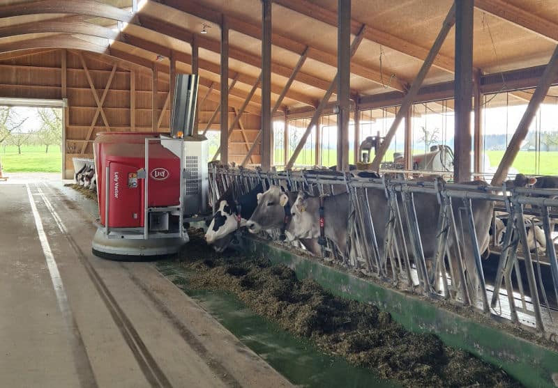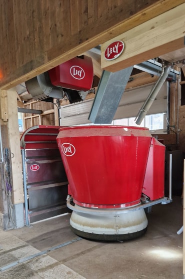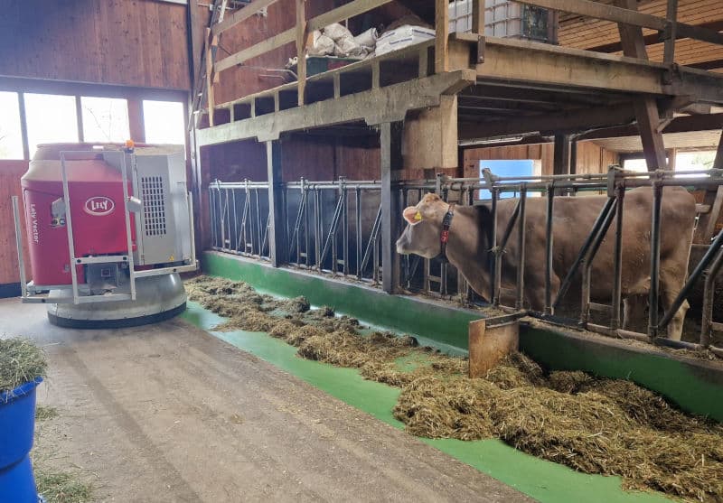 Der Anbau an den bestehenden Laufstall dient als Lagerraum der verschiedenen Futterkomponenten zur Beschickung des automatischen Fütterungsroboters.