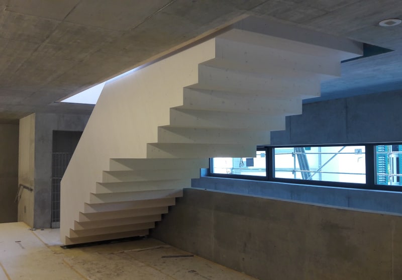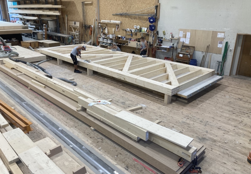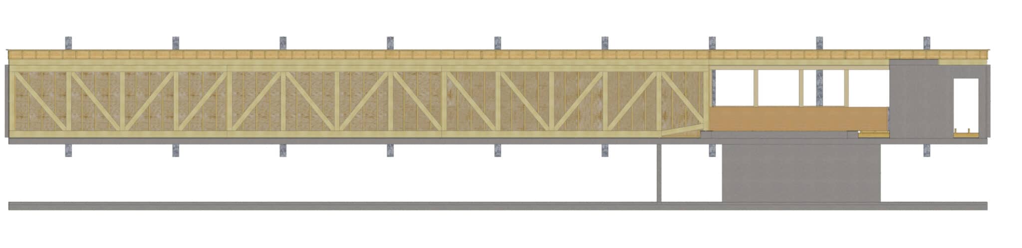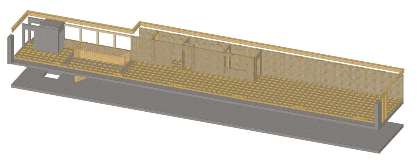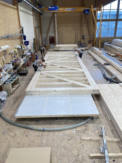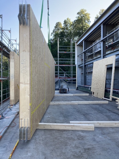 Projekt: Die Sportanlage Elba in Wald konnte um ein Geschoss aufgestockt werden. Der Holzelementbau wurde ergänzt mit drei anspruchsvollen Holzfachwerken (3.4x13m / Gewicht 4t) und einer vorgefertigten Treppe aus Brettsperrholz. Auf die bestehende Betondecke konnte ein Hohlboden auf Holz erstellt werden, unter welchem die Installationen verlaufen. Dies ist nun die Zuschauertribüne für Sportanlässe.