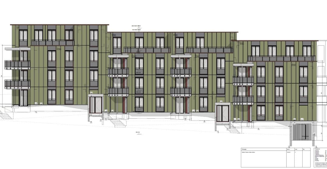 Projekt: Die in die Jahre gekommenen Gebäude werden durch einen Neubau ersetzt. Der Neubau wird in Hybridbauweise erstellt und beinhaltet 24 Wohneinheiten von 2.5- bis 5.5 Zimmern.