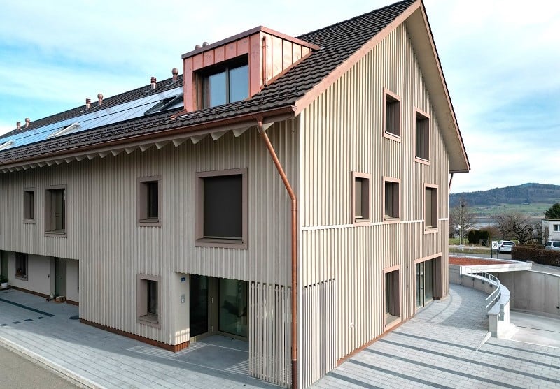 Projekt: Im Kern vom idyllischen Seegräben ist ein neues Mehrfamilienhaus in Hybridbauweise (Beton und Holz gemischt) entstanden. Wir erstellten die Aussenwände und das Steildach in Holzelementbauweise. Die Fassadenverkleidung wurde aus Holz gefertigt, die mit ökologischer Roggenmehllasur behandelt wurde.