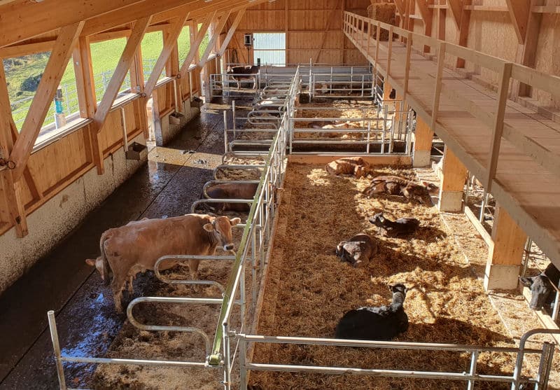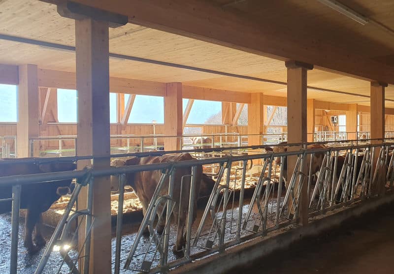 Projekt: Von der Projektierung bis zur Ausführung wurde der Mutterkuhlaufstall für 38 Mutterkühe von uns geplant und mit Schweizer Holz gebaut. Der Laufhof mit perforierten Betonspaltenböden befindet sich auf dem Jauchetrog mit total 480 m3 Volumen. Die Laufgänge werden durch eine automatische Schieberentmistung gereinigt.