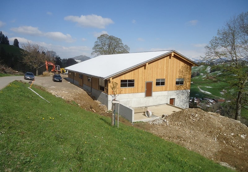 Projekt: Von der Projektierung bis zur Ausführung wurde der Weidstall von uns geplant und mit Schweizer Holz gebaut.