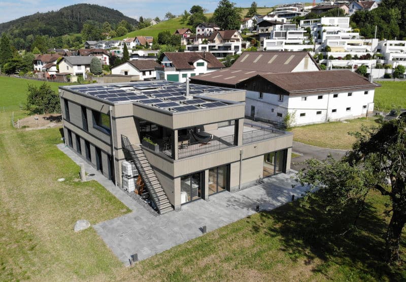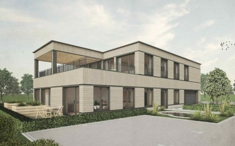 Wohnen und Gewerbe raffiniert vereint unter einem Dach. Die unterschiedlichen Nutzungen Wohnen und Büroräumlichkeiten der Firma iCASA Smarthome, wurden hinsichtlich der Anforderungen an Brandschutz und Schallschutz günstig getrennt. Auch aus architektonischer Sichtweise wurden die unterschiedlichen Nutzungen ohne Störfaktoren raffiniert gelöst. Der zweigeschossige Holzbau in Holzelementbauweise mit vorvergrauter Holzfassade wurde von der Idee, Konzeptionierung bis zur fertigen Ausführung durch uns realisiert.