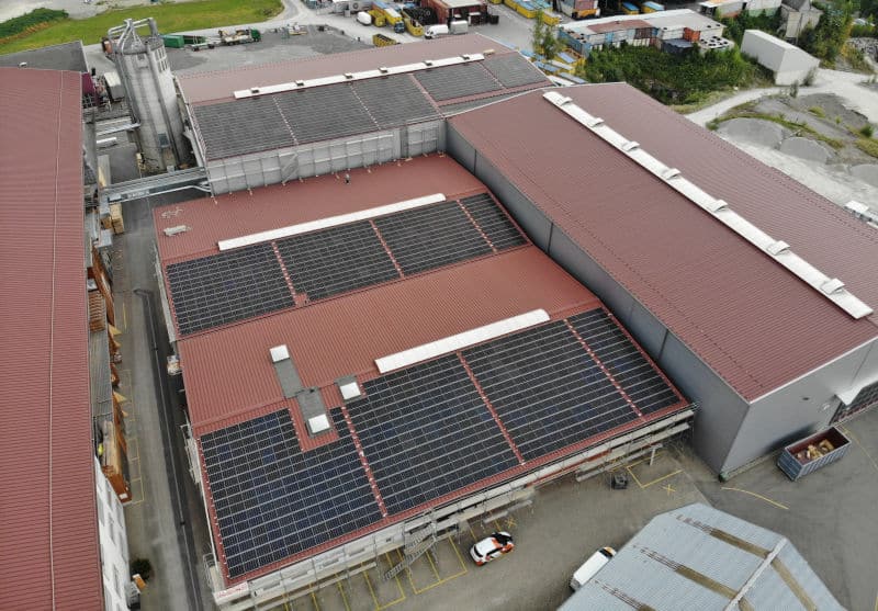 Projekt: Eine grosse Aufdach PV-Anlage auf drei Süd ausgerichteten Trapezblechdächer eines Holzverarbeitungsbetriebes. Es wurden 2060Stk. «Befestigungsböckli» mit 8240 Nieten befestigt. Anschliessend wurden 929 Module mit 2060 Modulklemmen auf die «Böckli» montiert. Für den Anschluss der Module wurden rund 6Km Kabel verlegt und rund 100 Stecker montiert. Durch den hohen Stromverbrauch der grossen Maschinen, wird ein grosser Teil des produzierten Stroms direkt verbraucht.