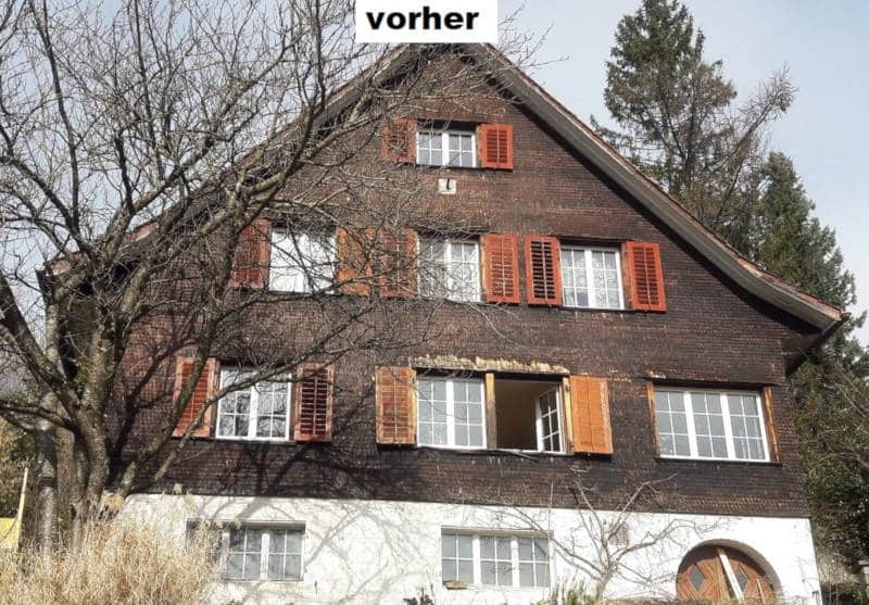 Im etwas versteckten Ortsteil von Wald durften wir ein Einfamilienhaus kernsanieren. Die bestehende Schindelfassade und das bestehende Dach wurden abgebrochen, damit aussen vollflächig eine natürliche Wärmedämmung angebracht werden konnte. Im Innenbereich wurden Böden und Wände teilweise komplett ersetzt oder auf gerostet und neu beplankt. Die Dachschräge wurde mit Weisstanne getäfert. Die Fenster wurden ersetzt. Die fertige Fassadenverkleidung besteht aus der Kombination von Lärchenschindeln und Aluzargen. Auf das Dach wurde eine PV-Indachanlage installiert, selbstverständlich aus dem Hause Artho AG.