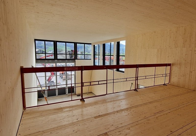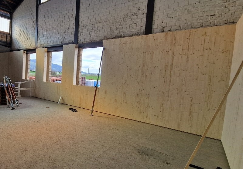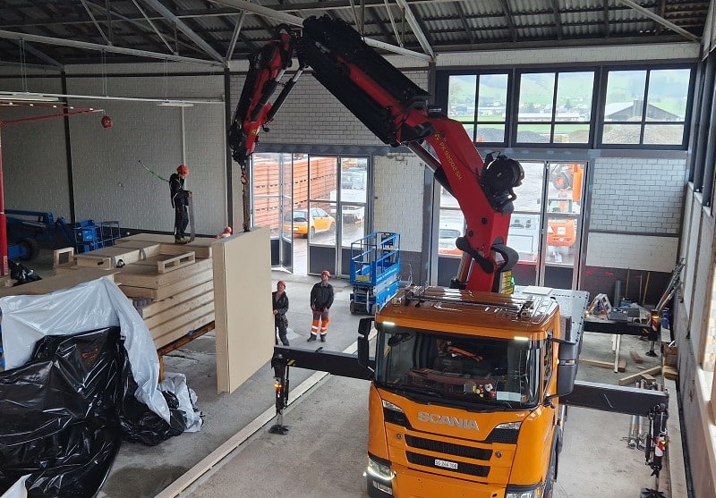 In einer bestehenden Lagerhalle in Tuggen dürfen wir ein wärmegedämmtes Abteil für die gewerbliche Nutzung einbauen. Die Wände und Decke sind einfach konzipiert. Durch die vielen Holzoberflächen entsteht ein sehr behagliches Arbeitsklima. Herausforderungen bei diesem Projekt waren die Platzverhältnisse und die Montage der Elemente mit dem LKW-Kran. In Millimeterarbeit wurden die Elemente montiert.